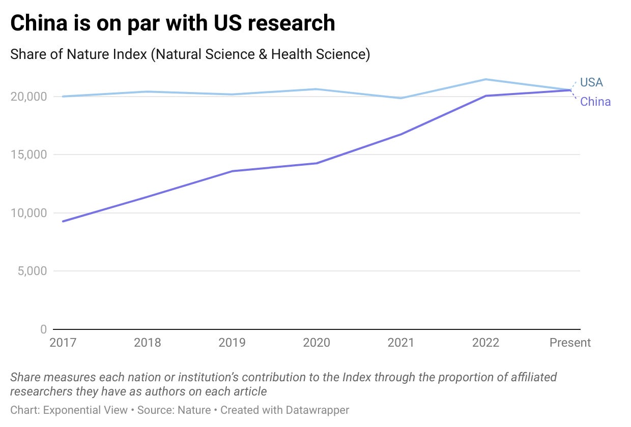The return on this investment is already evident in the Nature Index, which measures each nation’s researchers’ article contributions. This year China reached parity with the United States on the index for the first time.