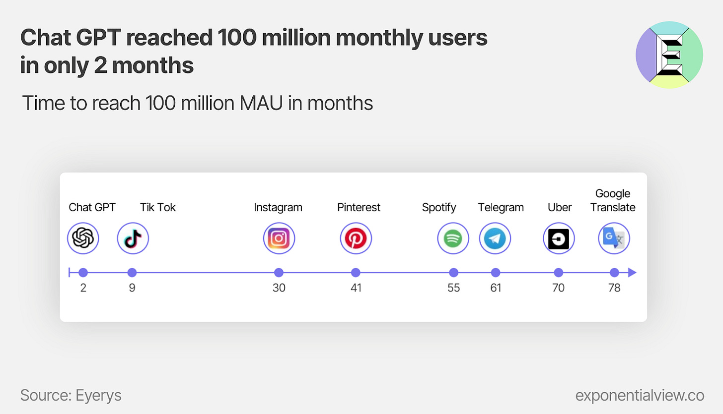Within this competitive landscape, OpenAI boasts the highest valuation, closely followed by DeepMind, Anthropic, and StabilityAI. The two stand-out research labs are OpenAI (the makers of ChatGPT) and Google DeepMind, which has built some outstanding models such as AlphaGo and AlphaFold (listen to Azeem’s conversations with Sam Altman of OpenAI, and Demis Hassabis of DeepMind).Â