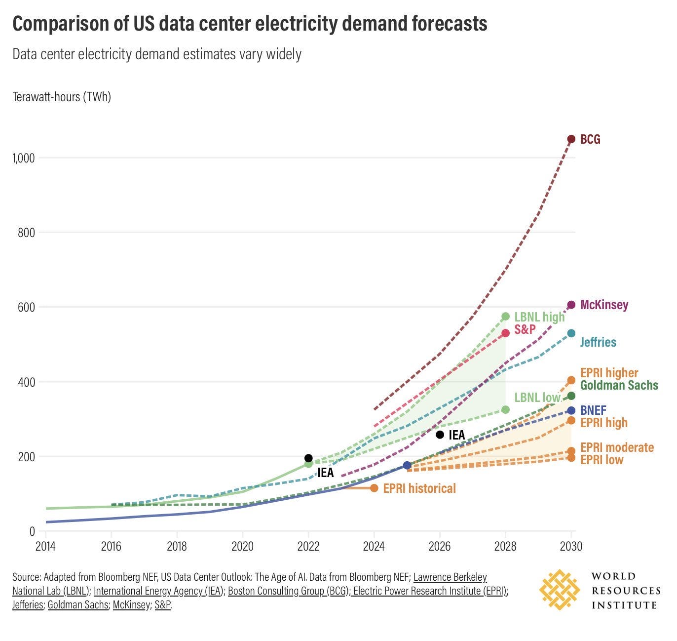 Data center uncertainty β BCGβs 2030 US data-center electricity forecast is over 5x the lowest estimate.