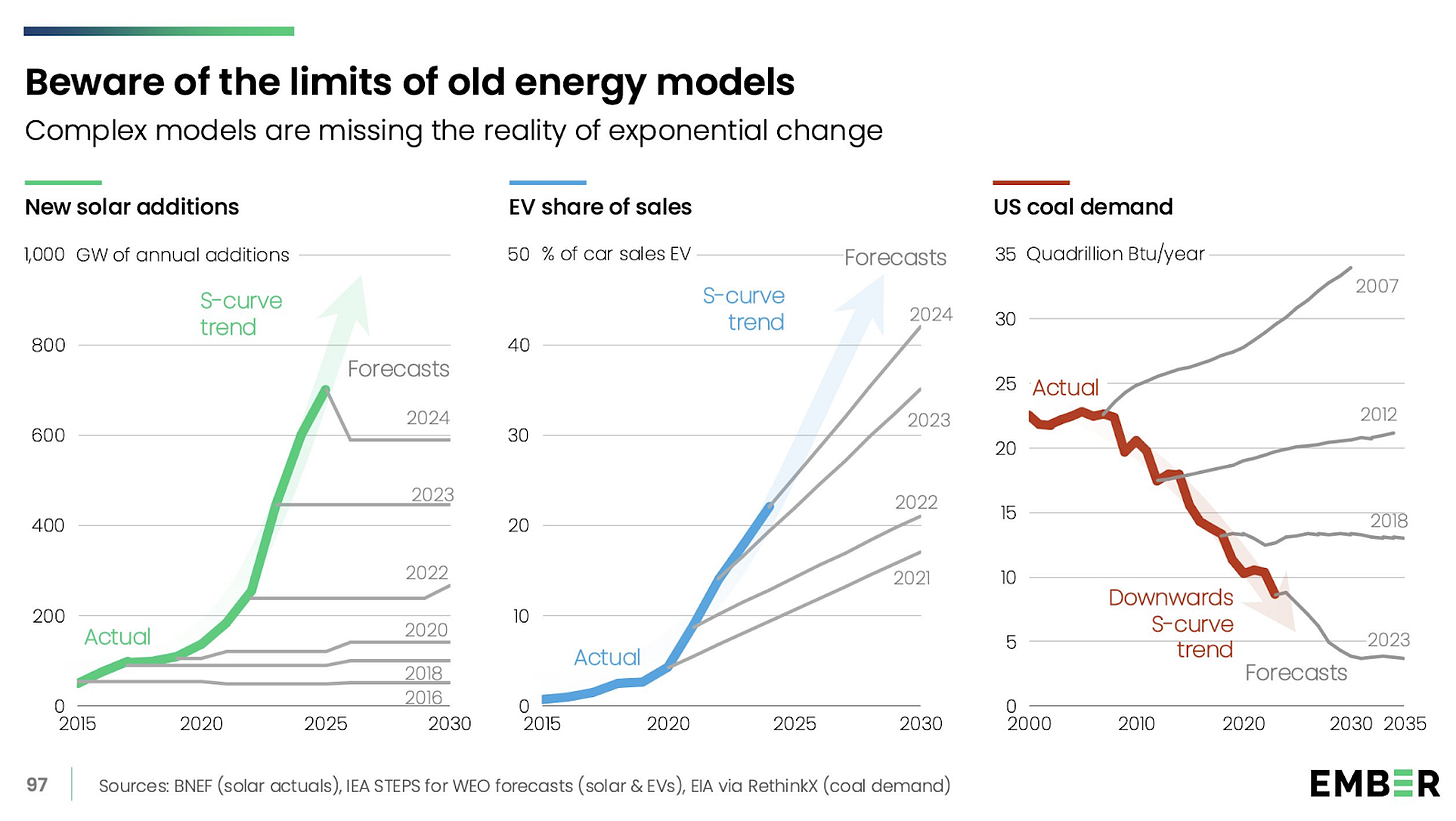 Diplomacy is linear; technology is exponential. Despite the gridlock at COP30, clean-tech adoption is shattering historical forecasts β rendering the fossil fuel era economically obsolete faster than regulators can phase it out.1
