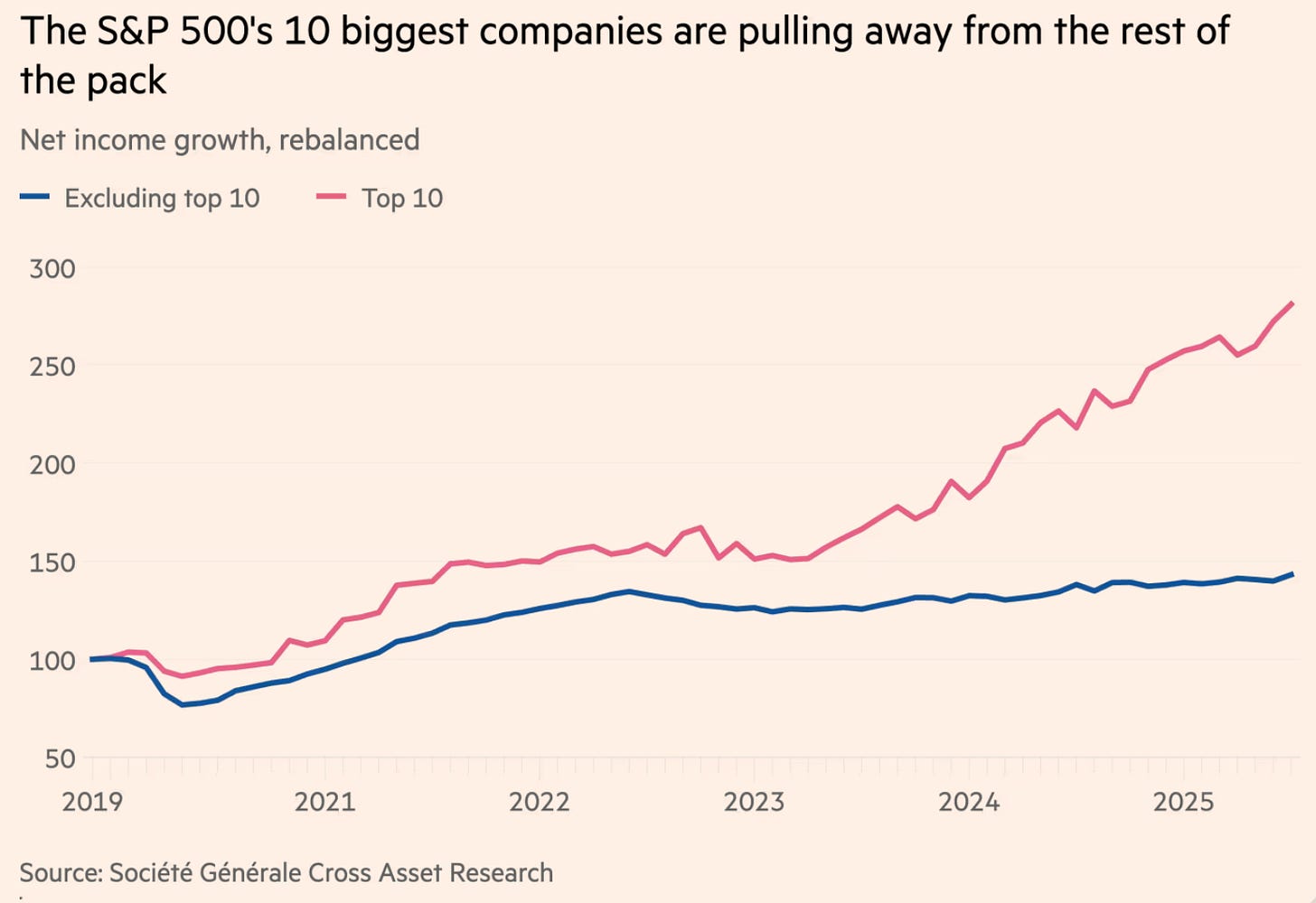 Market concentration β The net income of the S&P 500βs ten largest companies has grown by ~180% since 2019, while the rest of the index grew by just ~45%.
