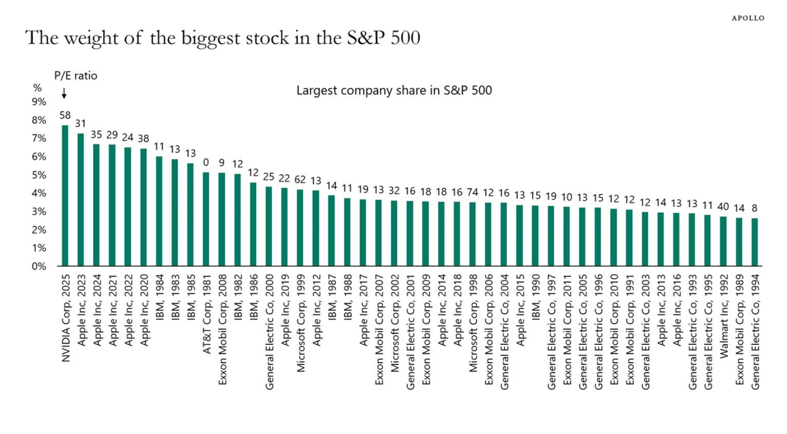 Nvidia on top β Nvidia now makes up nearly 8% of the S&P 500, the highest weighting of any stock in the indexβs history.