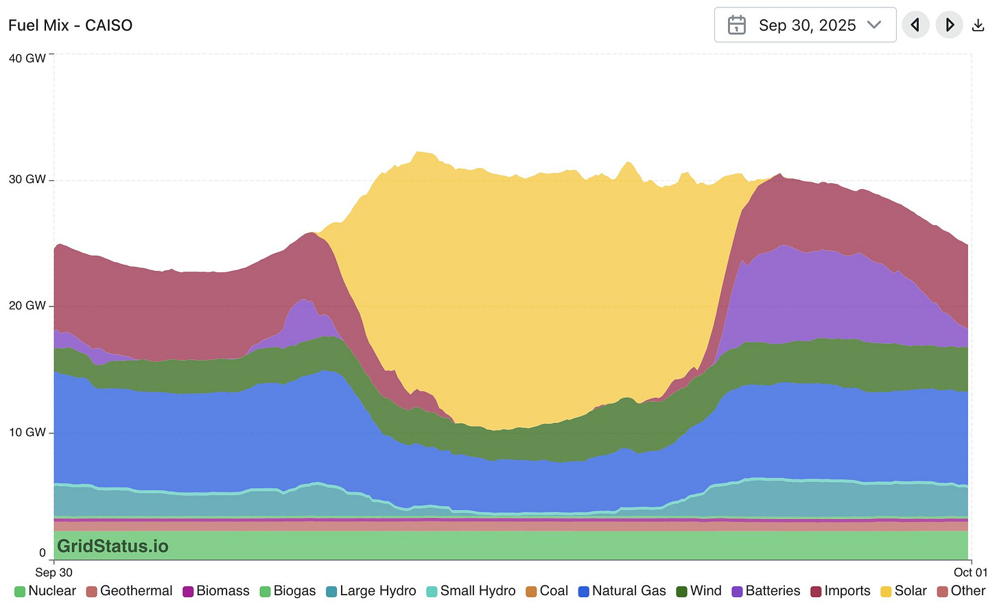 Battery storage as a power plant β Batteries supplied over 20% of electricity demand for four straight hours after sunset in California last week. (h/t Nicolas Fulghum)