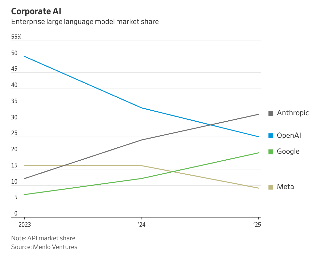 Where exactly this platform is located is a little ambiguous. OpenAI’s strongest vertical is ChatGPT, with more than 800 million weekly users (Gemini is second with 650 million monthly users). Now, they want people to build on their platform, likely via APIs. OpenAI is currently second to Anthropic on API market share, but they’re right to move into this zone. The closer a company sits to the bottom of the stack, the more control it has, especially as compute and energy become the real bottlenecks. Few players have the clout to commit $1.4 trillion to infrastructure spending, and that bill will only rise.