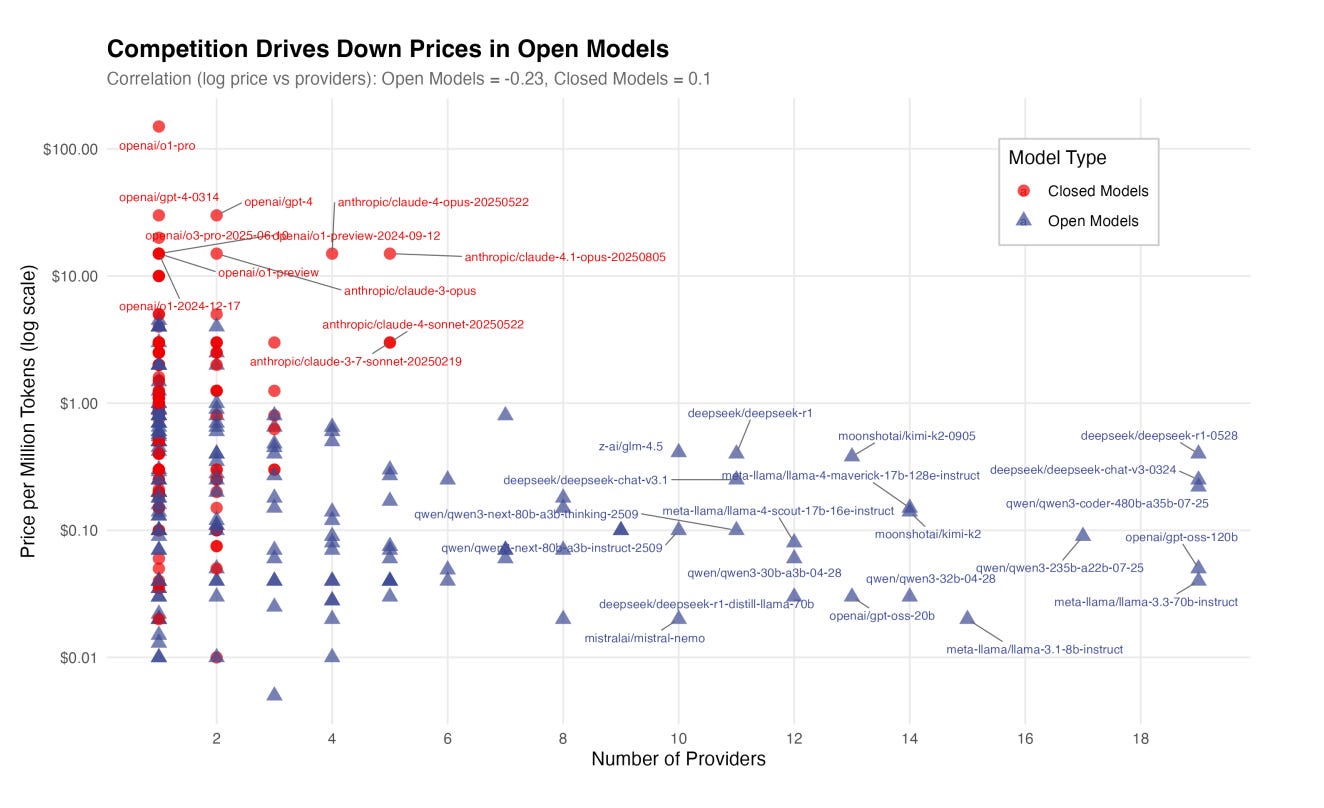 Despite open models now achieving performance parity with closed models at ~6x lower cost, closed models still command 80% of the market. Enterprises are overpaying by billions for the perceived safety and ease of closed ecosystems. If this friction were removed, the market shift to open models would unlock an estimated $24.8 billion in additional consumer savings in 2025 alone.