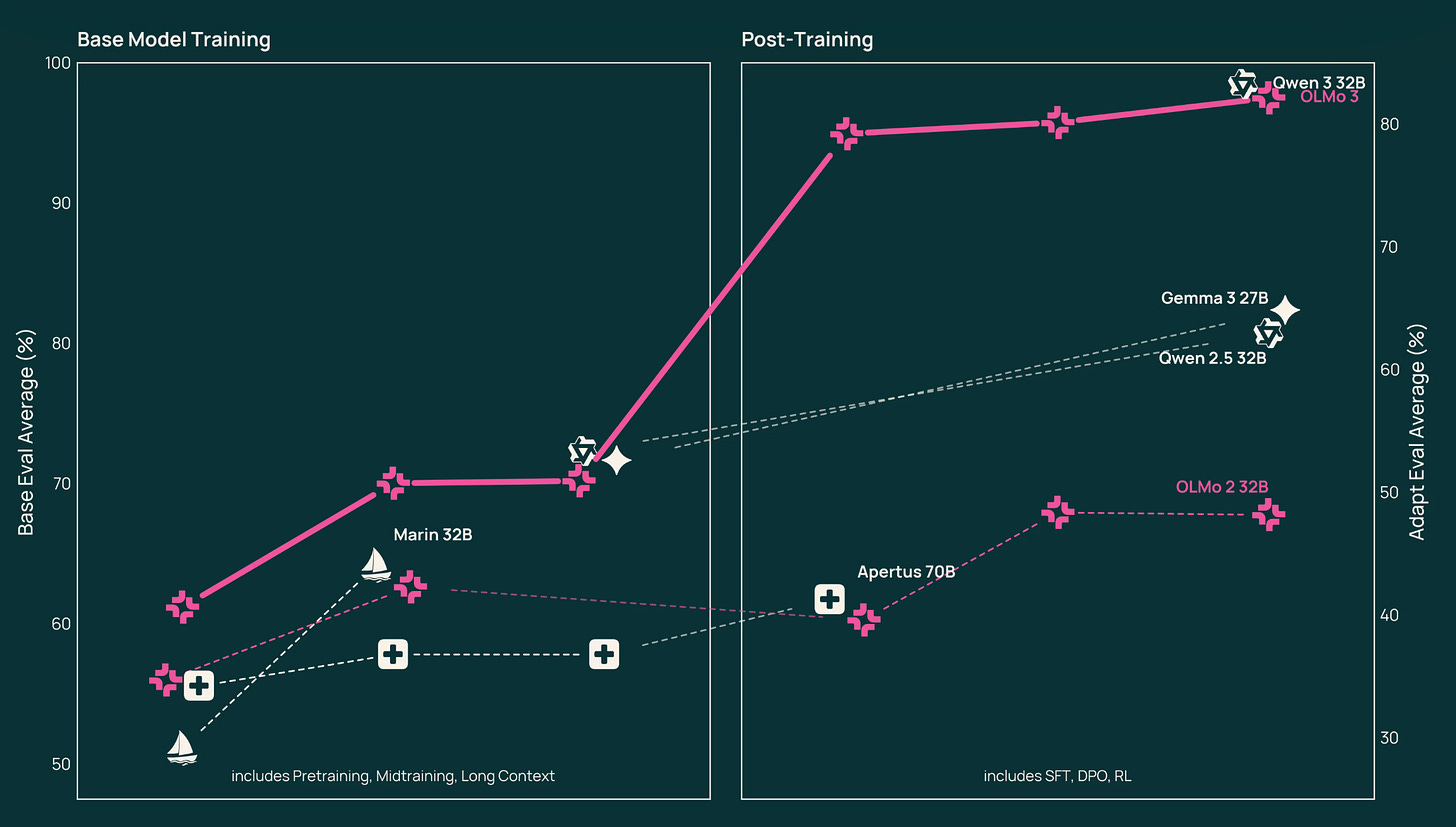 The Allen Institute for AI released OLMo 3 this week, a frontier-scale US model that approaches the performance of leading systems like Llama 3.1 while remaining fully auditable. By openāsourcing the pipeline, OLMo 3 lowers the barrier for Western firms and researchers to build and to reduce the dependence on closed or foreign models.
