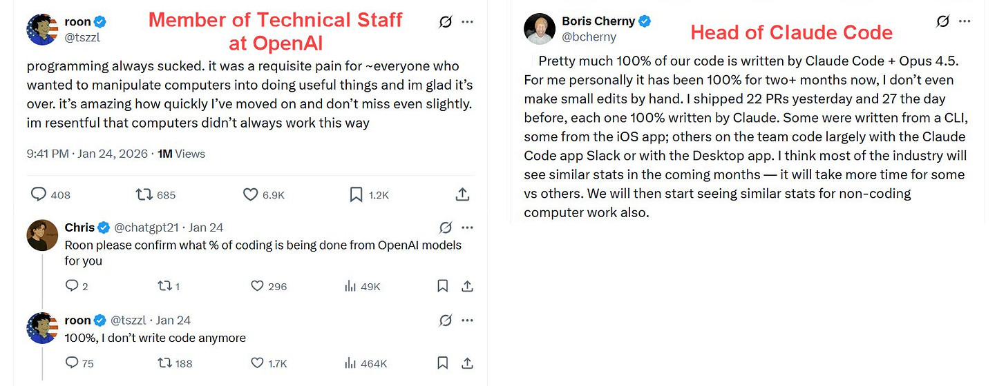 Claude Code (and competitors like OpenAIâs Codex) are now trusted by very best developers in the world: those at Anthropic and OpenAI to write 100% of their code. In the case of Claude Code, itâs writing its own codebase. That is a weird phenomenon. The tool that makes itself, possibly even the invention that is itself a method of invention.