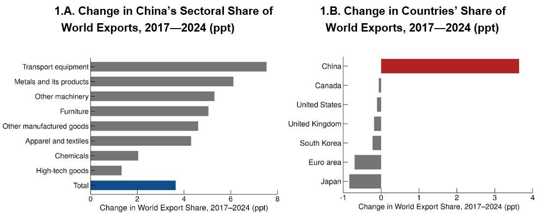 China is a big part of that revision. The old logic assumed that as China moved up the value chain, it would vacate lower-end manufacturing and leave room for poorer countries to climb the ladder; instead, between 2017 and 2024, China pushed deeper into autos, batteries and other higher-value exports without surrendering much lower-end share, which is not how the old sequencing story was supposed to work.