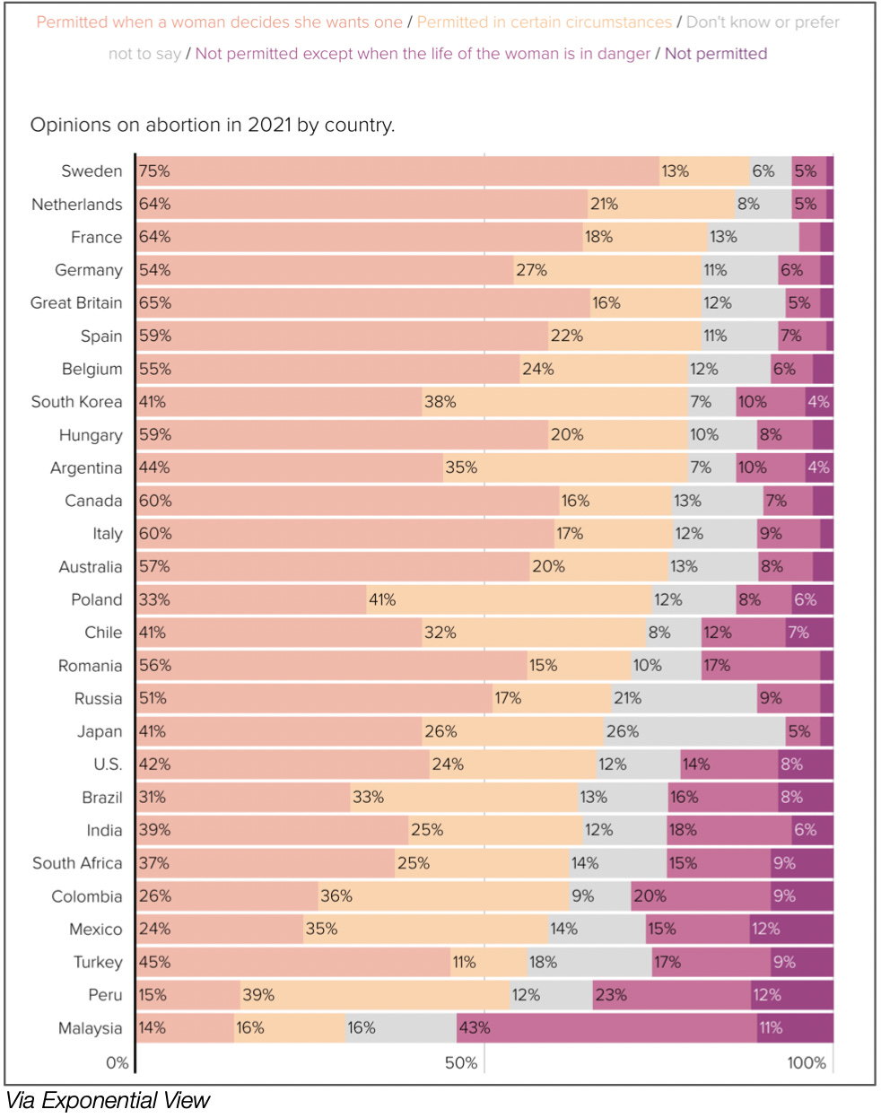 Americans are still, on average, less liberal than many Western countries. While the Swedes broadly agree that abortion should be legal, the Turkish and Romanian populations still seems starkly divided on the issue.